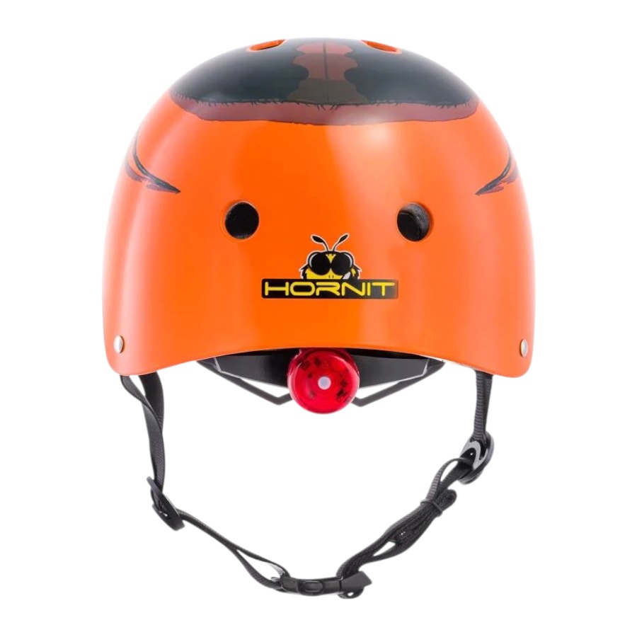 Ένα καλοσχεδιασμένο παιδικό κράνος με διπλό κέλυφος για μεγαλύτερη προστασία. Διαθέτει 11 αεραγωγούς που εξασφαλίζουν την ομοιόμορφη ροή του αέρα και έτσι τα κρατάει δροσερά και άνετα. Τα κράνη Hornit προστατεύουν τα παιδιά καθώς αντέχουν τη βροχή, το χιόνι και τον άνεμο. Το φωτάκι led στο πίσω μέρος είναι με τρείς σκάλες και ειδοποιεί τους οδηγούς ή τους πεζούς προσφέροντας έτσι μεγαλύτερη ασφάλεια. Ιδανικά για παιδιά ηλικίας 3 ετών και άνω.