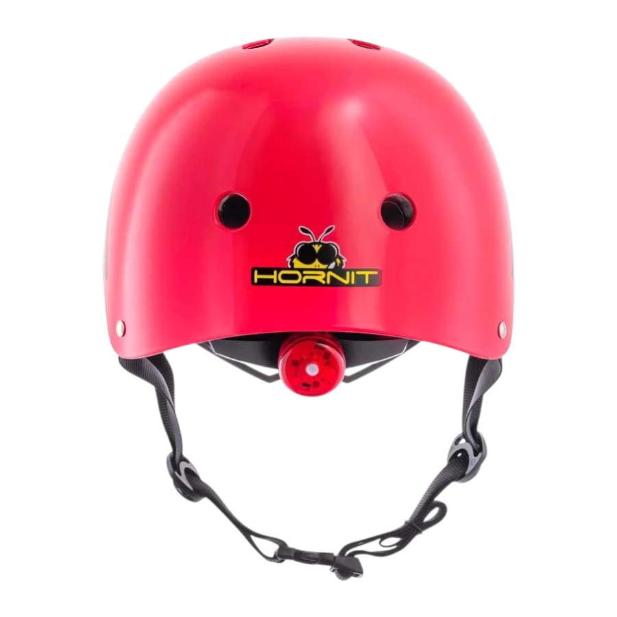 Ένα καλοσχεδιασμένο παιδικό κράνος με διπλό κέλυφος για μεγαλύτερη προστασία. Διαθέτει 11 αεραγωγούς που εξασφαλίζουν την ομοιόμορφη ροή του αέρα και έτσι τα κρατάει δροσερά και άνετα. Τα κράνη Hornit προστατεύουν τα παιδιά καθώς αντέχουν τη βροχή, το χιόνι και τον άνεμο. Το φωτάκι led στο πίσω μέρος είναι με τρείς σκάλες και ειδοποιεί τους οδηγούς ή τους πεζούς προσφέροντας έτσι μεγαλύτερη ασφάλεια. Ιδανικά για παιδιά ηλικίας 3 ετών και άνω.