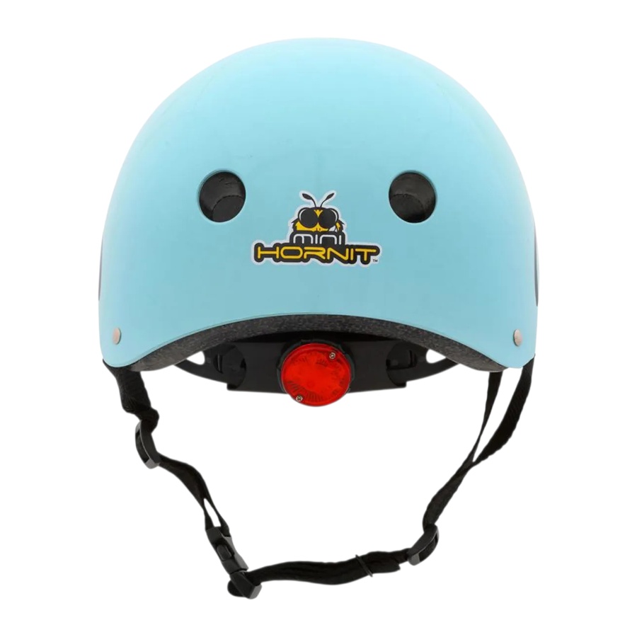 Ένα καλοσχεδιασμένο παιδικό κράνος με διπλό κέλυφος για μεγαλύτερη προστασία. Διαθέτει 11 αεραγωγούς που εξασφαλίζουν την ομοιόμορφη ροή του αέρα και έτσι τα κρατάει δροσερά και άνετα. Τα κράνη Hornit προστατεύουν τα παιδιά καθώς αντέχουν τη βροχή, το χιόνι και τον άνεμο. Το φωτάκι led στο πίσω μέρος είναι με τρείς σκάλες και ειδοποιεί τους οδηγούς ή τους πεζούς προσφέροντας έτσι μεγαλύτερη ασφάλεια. Ιδανικά για παιδιά ηλικίας 3 ετών και άνω.