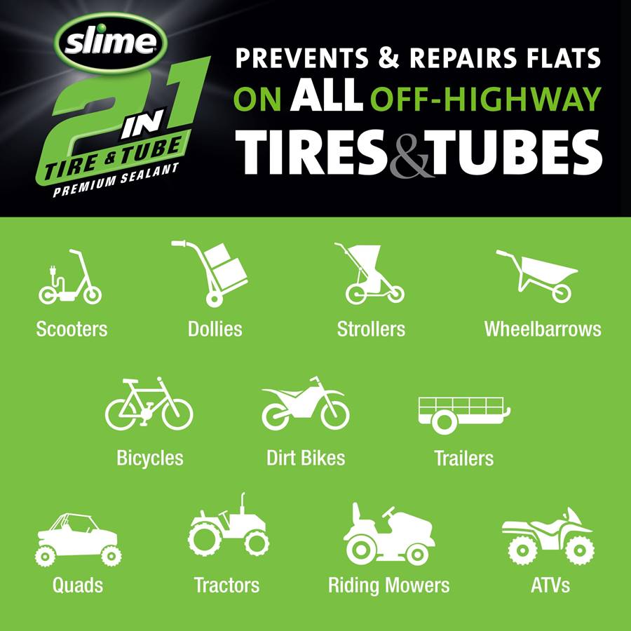 Το ελαστικό σας έχει αεροθάλαμο μέσα ή είναι tubeless; Ποιός νοιάζεται;! Το νέο 2-σε-1 Tire & Tube Premium Sealant της Slime λειτουργεί για την πρόληψη και την επισκευή σκασίματος σε όλα τα ελαστικά και τους αεροθάλαμους εκτός δρόμου. Απλώς λειτουργεί!